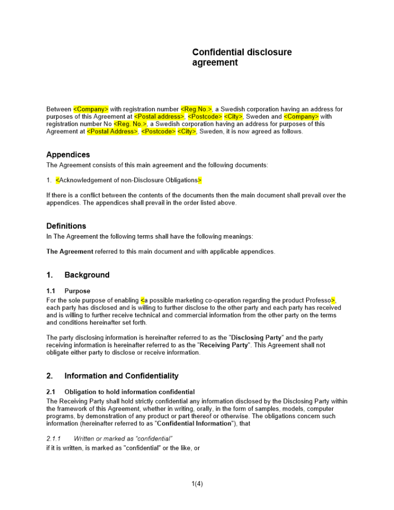 Produkter taggade med 'agrement engelska dokument engelska Sekretessavtal ömsesidigt eng mottagare utlämnare information konfidentiell Non Disclosure Agreement'