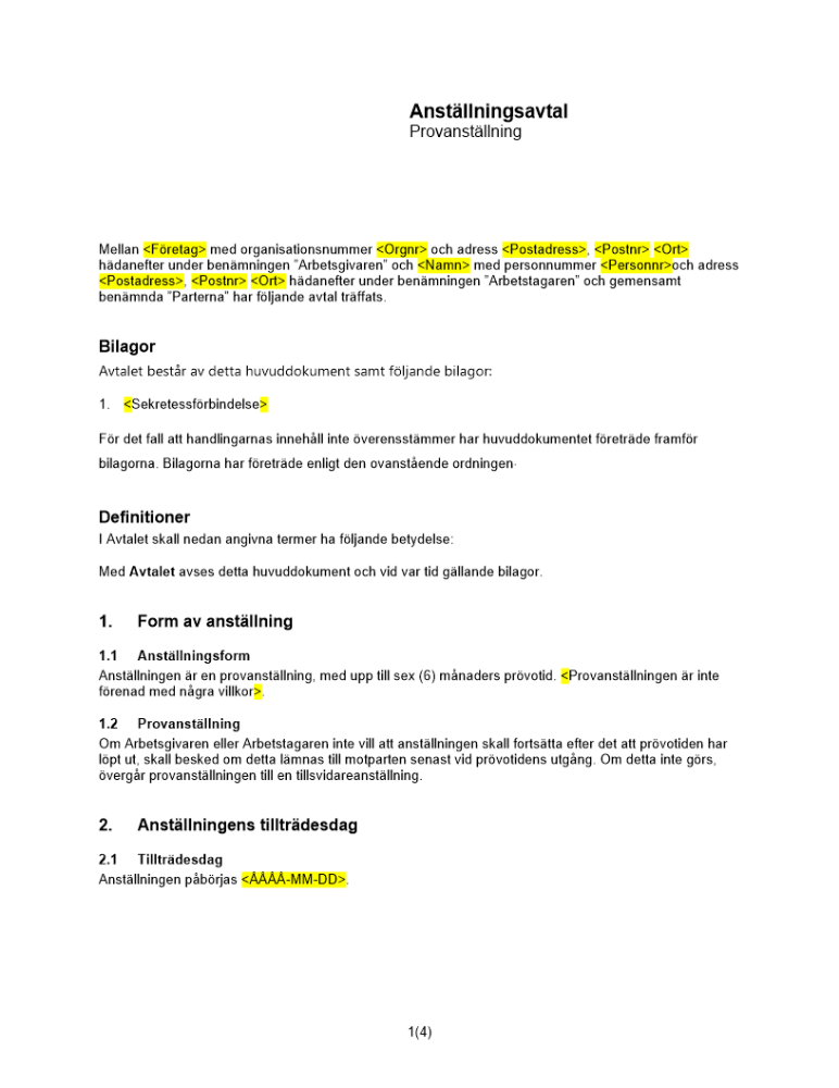 • Anställningsavtal