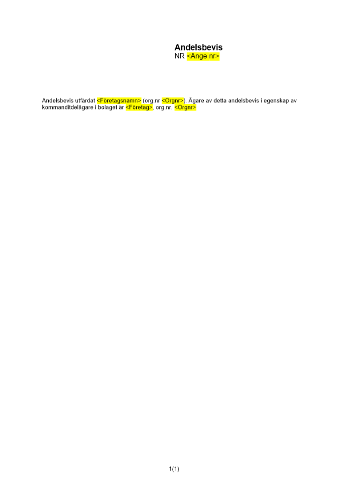Produkter taggade med 'Andelsbevis kommanditbolag andel bolagsman '