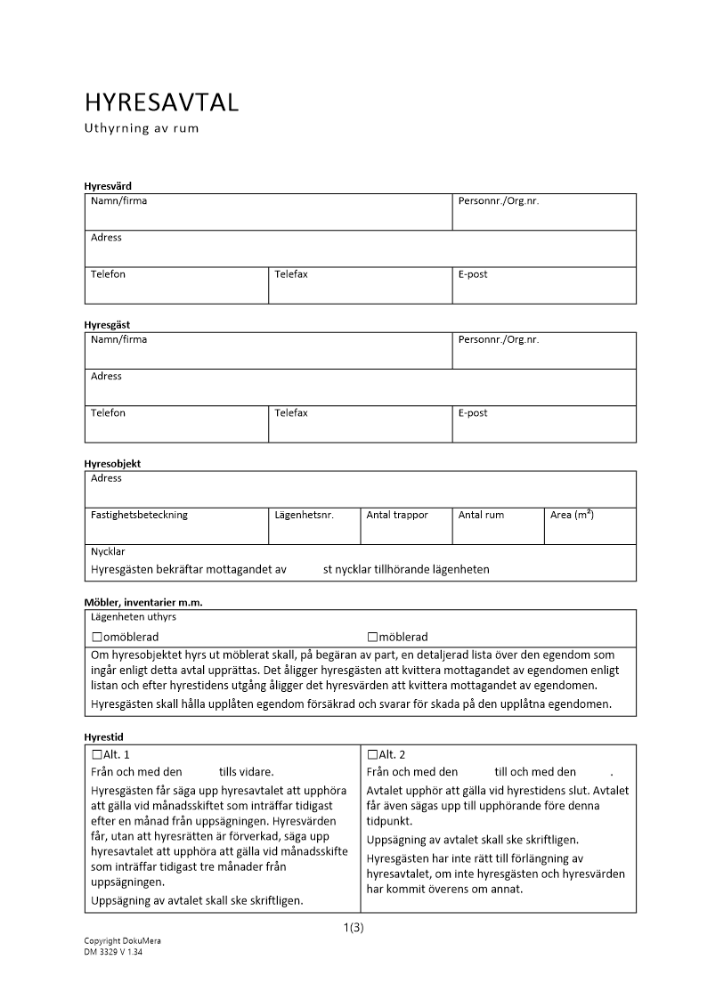 Produkter taggade med 'hyreskontrakt Hyresavtal hyra ut rum uthyrning rum del av lägenhet privat rumshyra möblerat'