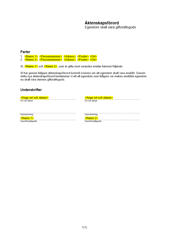 Produkter taggade med 'bröllop Äktenskapsförord äktenskap egendom enskild giftorättsgods under giftorättsgods'