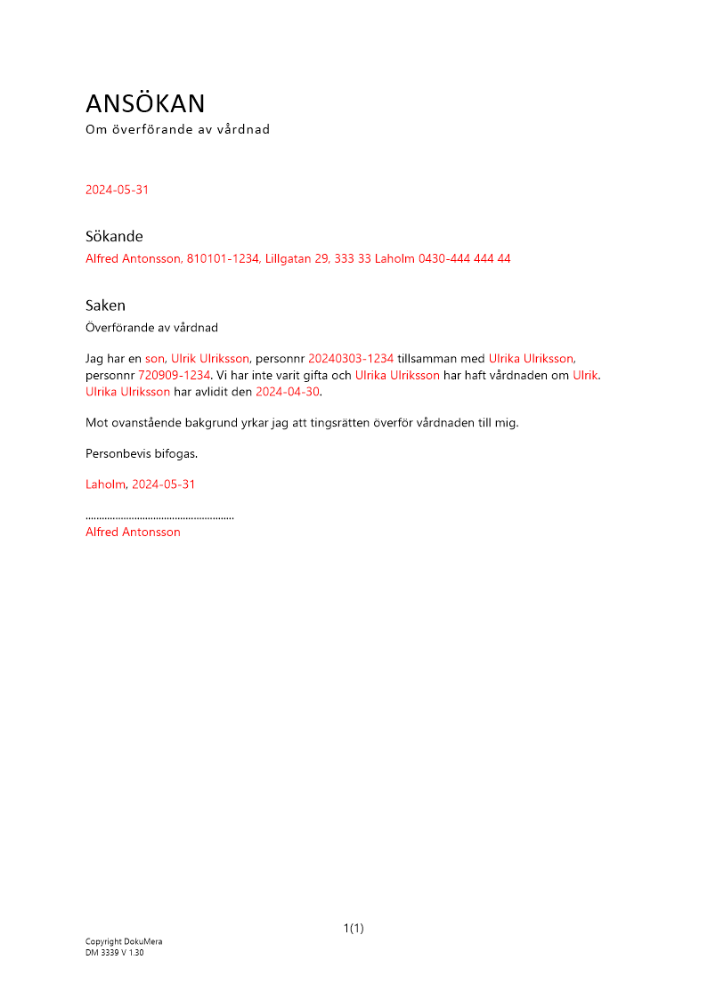 Produkter taggade med 'Överförande vårdnad barn.förälder död avlidit tingsrätt'