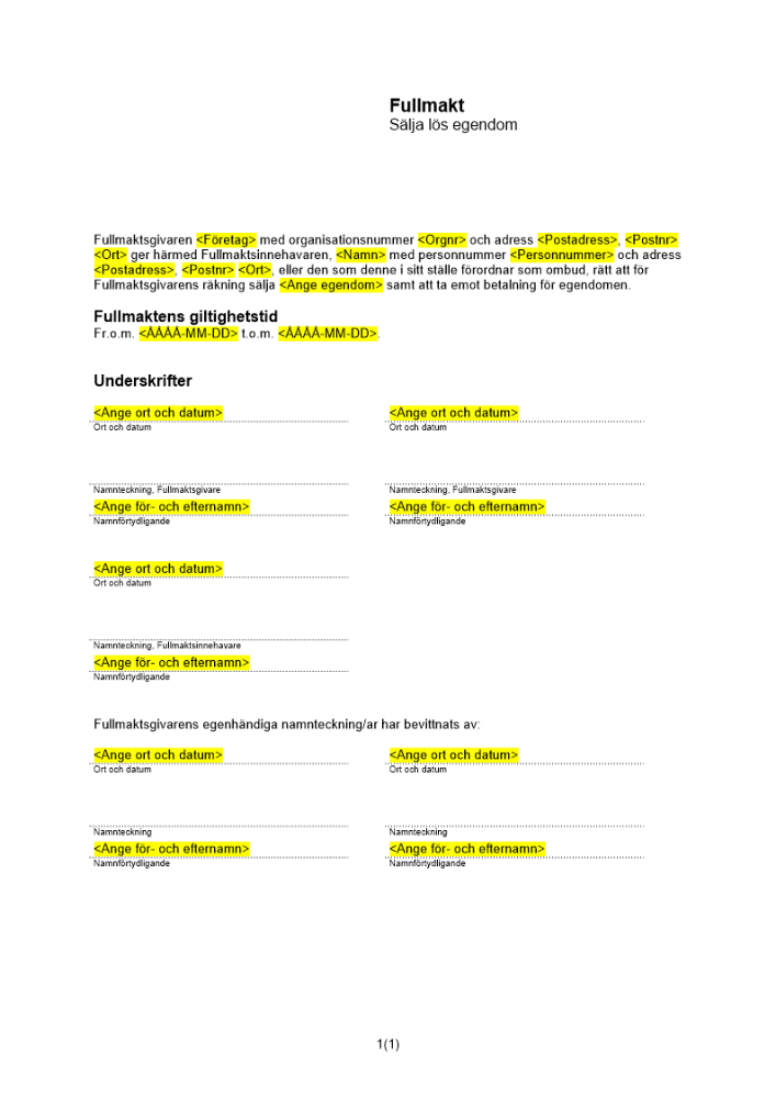 Produkter taggade med 'Fullmakt överlåtelse försäljning egendom tillhörigheter sälja tillåtelse behörighet'