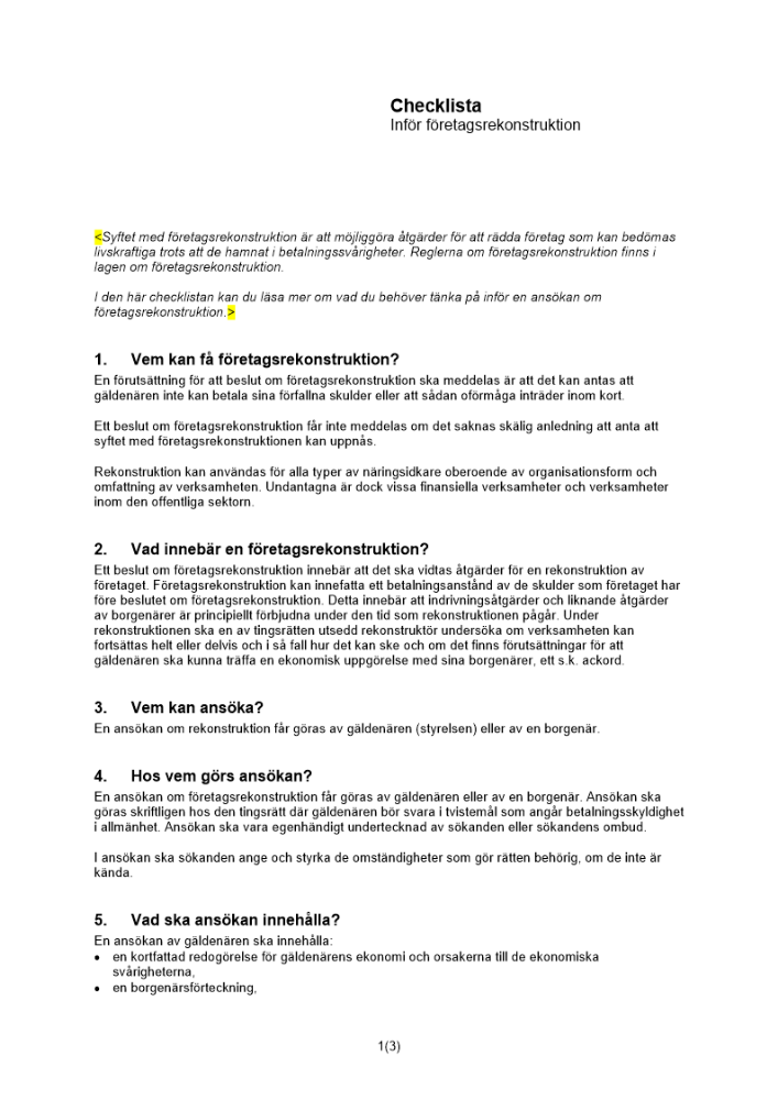Produkter taggade med 'Checklista företagsrekonstruktion rekonstruktör guide rekonstruktion handledning företag'
