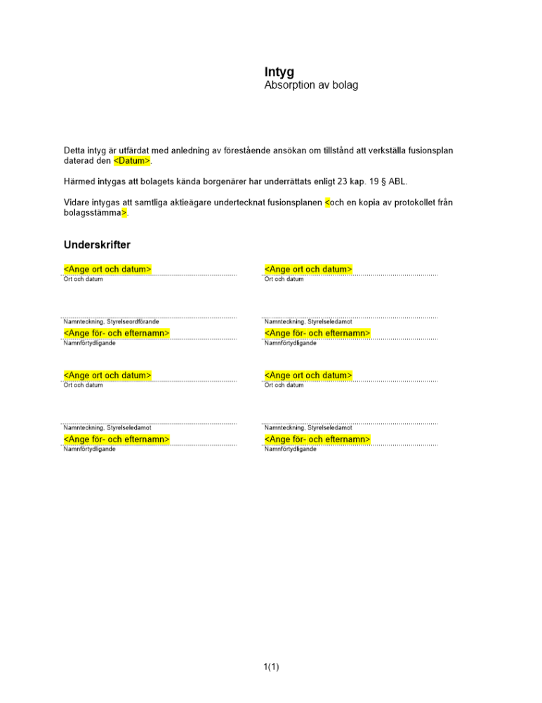 Produkter taggade med 'Intyg bolagsverket fusion fusionsplan underrätta borgenärer'