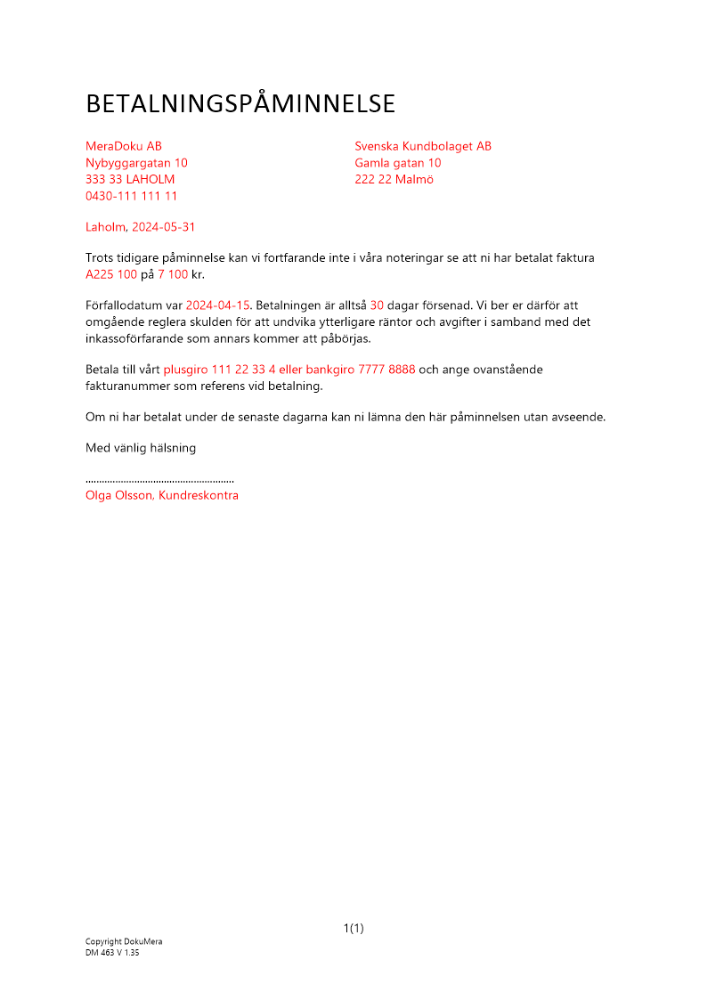 Produkter taggade med 'inkasso påminnelse krav kravbrev dröjesmålsränta dröjemålränta räntefaktura Påminnelsefaktura påminnelsefaktura Betalningspåminnelse utebliven betalning kund inkasso påminnelseavgift betalningspåminnelsen'