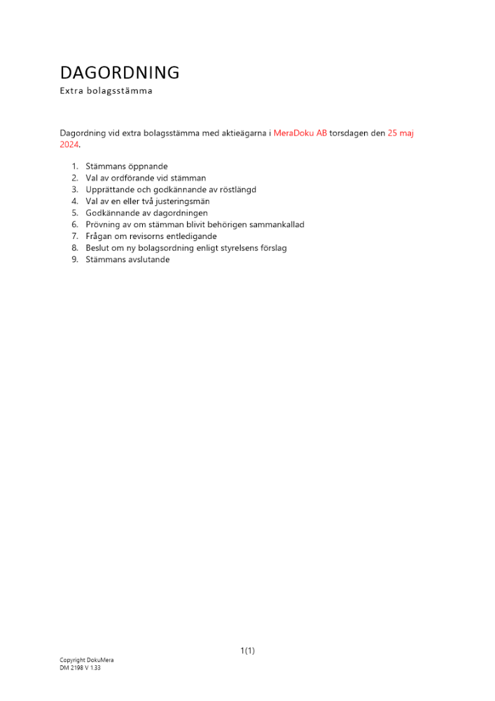 Produkter taggade med 'Dagordning extra bolagsstämma ny bolagsordning Bolagsverket'
