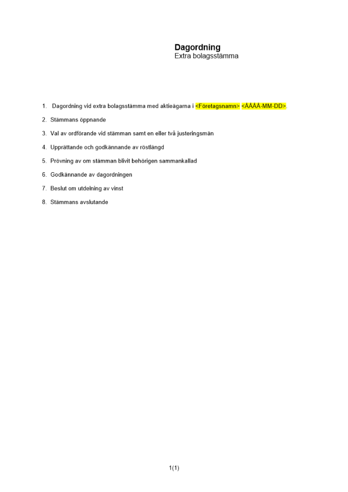 Produkter taggade med 'vinstutdelning utdelning vinst efterutdelning dagordning extra bolagsstämma stämma bolagsstämma'