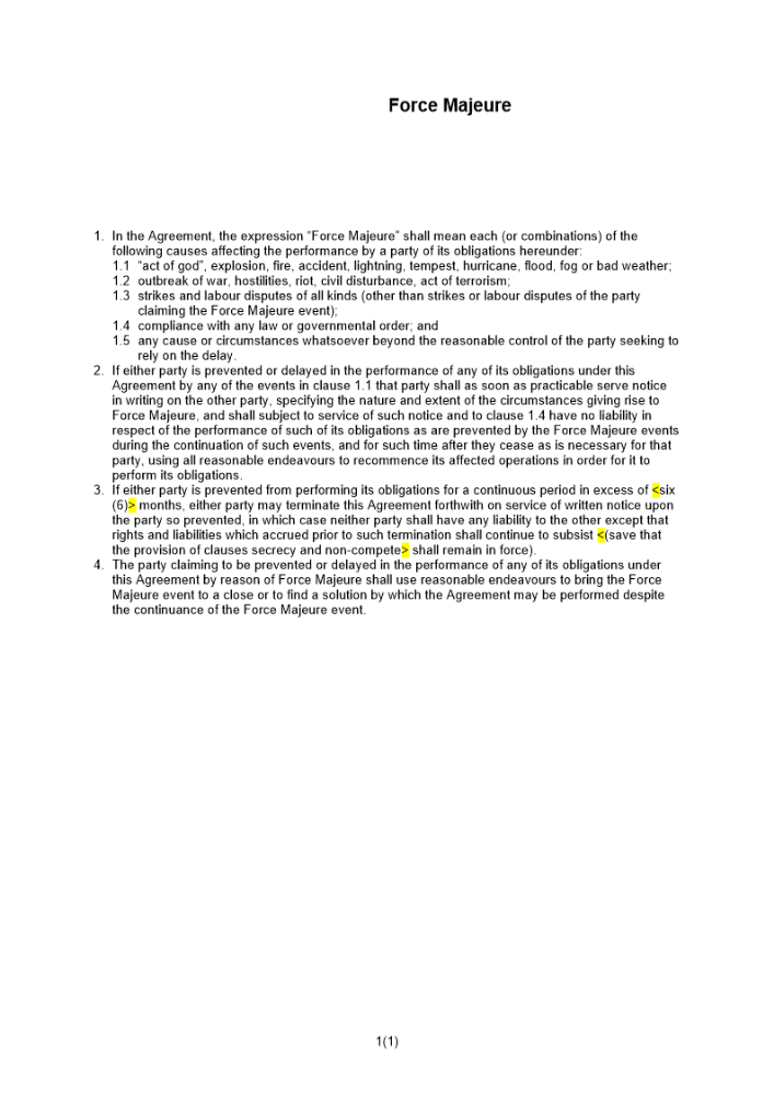 Produkter taggade med 'majeure force majör majur klausul engelsk engelska english avtal lång utförlig omfattande detaljerad'