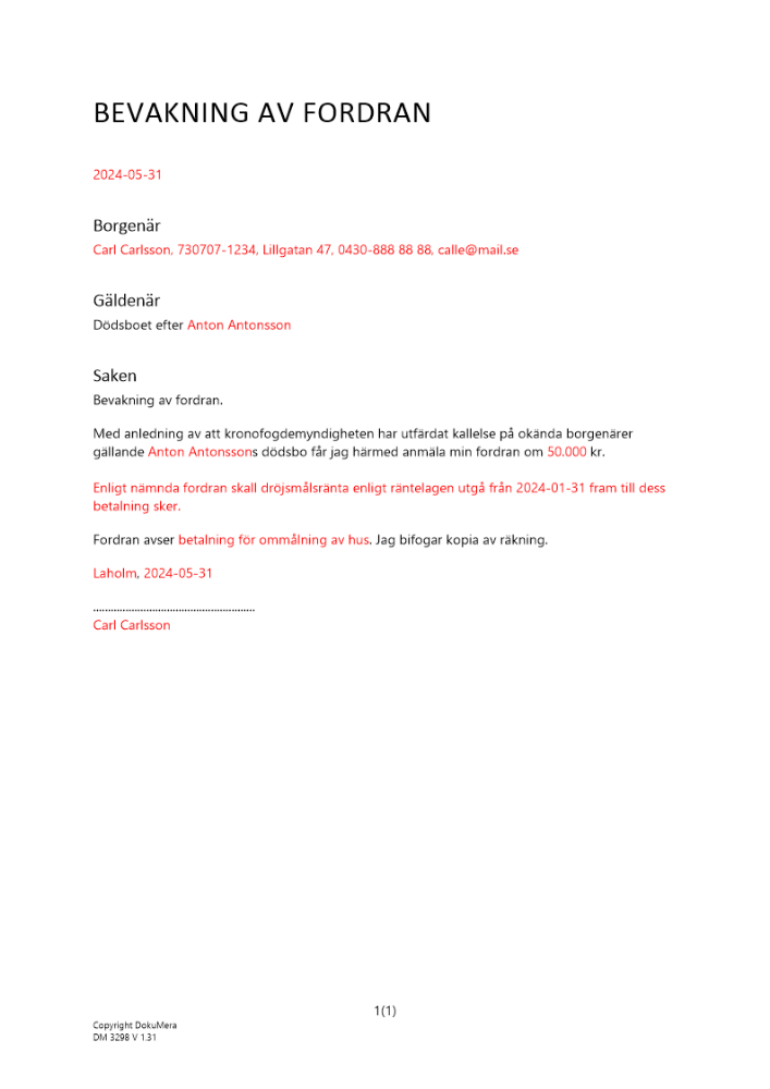 Produkter taggade med 'Okända borgenärer borgenär kallelse fordran skuld anmälan'