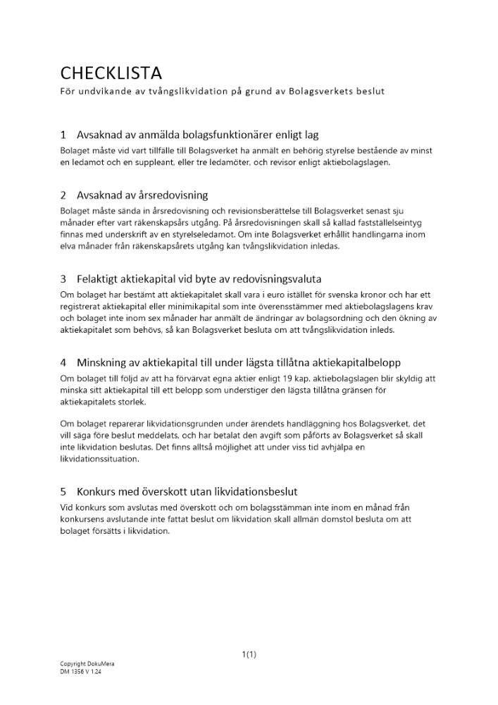 Produkter taggade med 'Checklista likvidation tvångslikvidation bolagsverket aktiebolag'