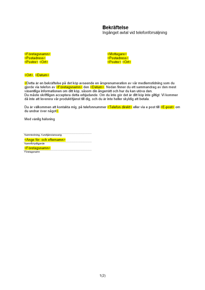 • Avtal aktieöverlåtelse