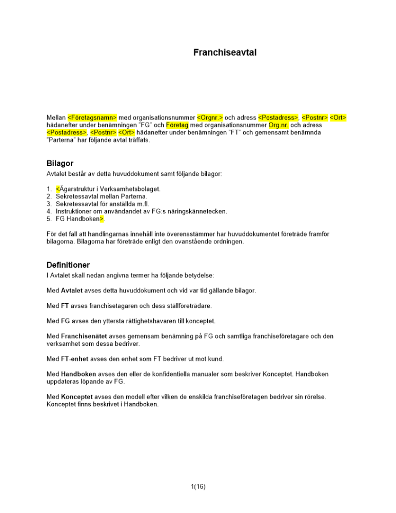 Produkter taggade med 'franchising franschise Franchiseavtal franchisegivare franchisetagare företagsform reglerar verksamheten'