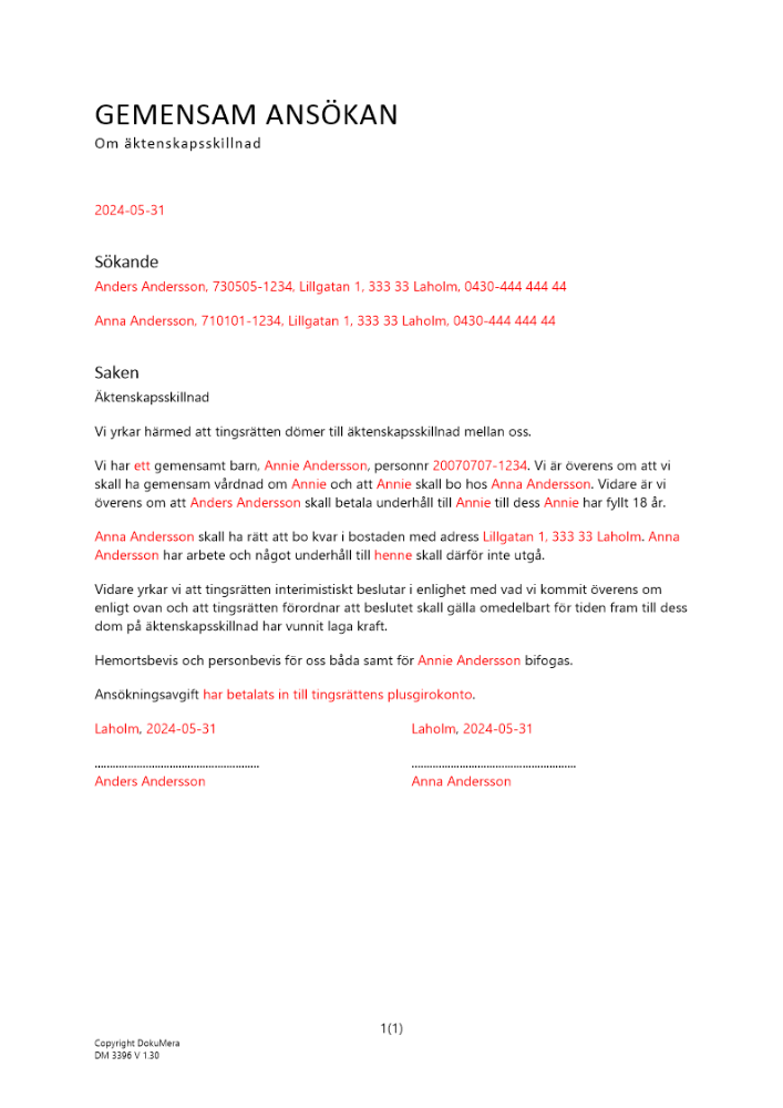 Produkter taggade med 'bröllop ansökan äktenskapsskillnad överens gemensam barn betänketid'