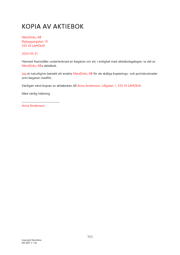 Produkter taggade med 'Aktiebok begäran kopia aktiebolag register förfrågan aktieägare bolag'