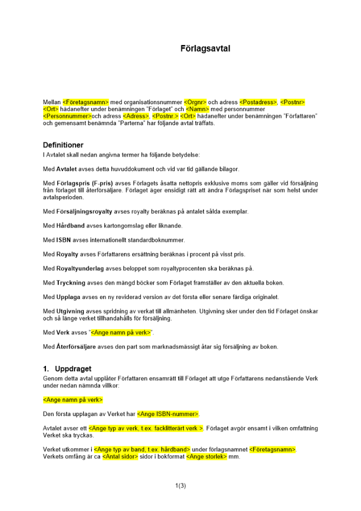 Produkter taggade med 'förlagsavtal avtal förlag bok förläggare författare'