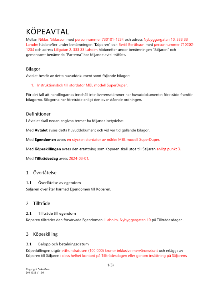 • Avtal aktieöverlåtelse