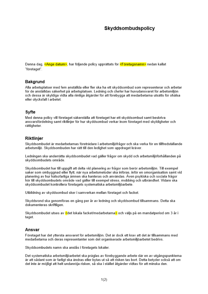 Produkter taggade med 'skyddsombud policy skyddsombudspolicy arbetsmiljö'