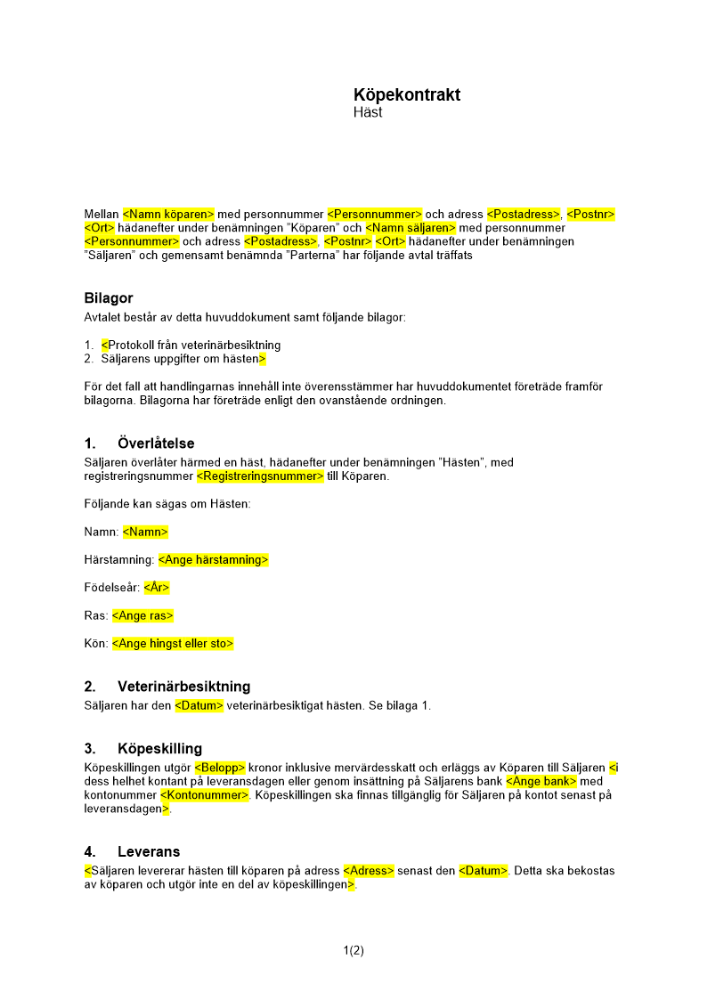 Produkter taggade med 'köpekontrakt avtal häst hästavtal köpa häst sälja häst'