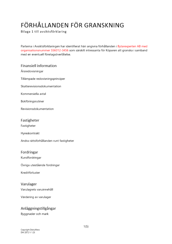Produkter taggade med 'letter of intent företagsavtal värdering av aktie genomgång ägarbyte Företagsöverlåtelseavtal rörelse Företagsöverlåtelseavtal rörelse Förhållanden granskning företagsöverlåtelse rörelse företagsgranskning Due Diligence inkråmsöverlåte'