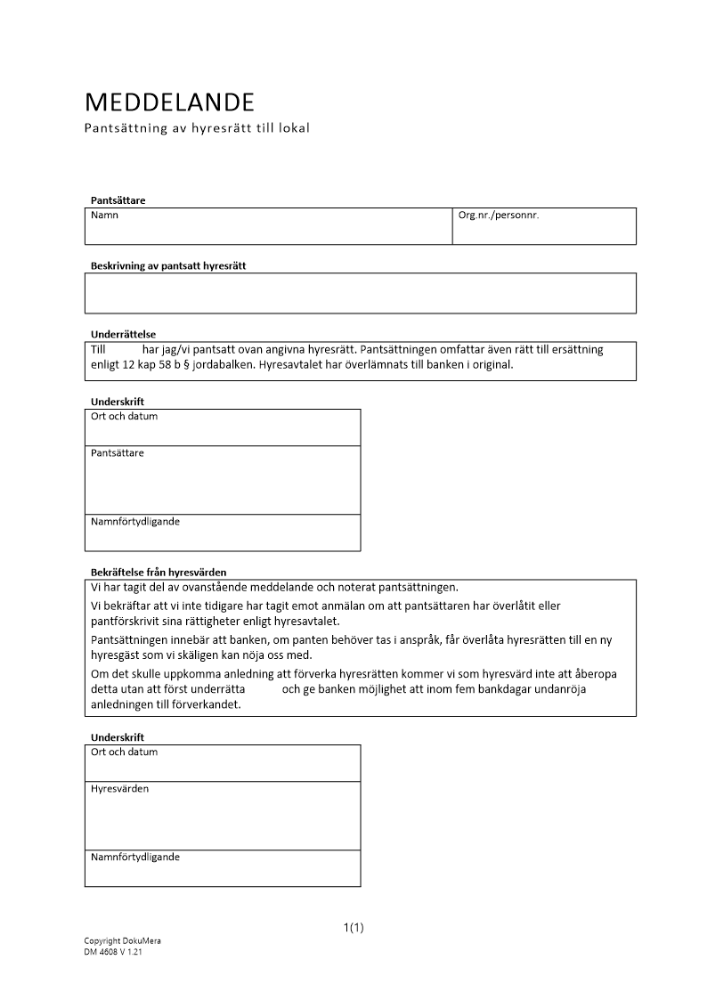Produkter taggade med 'hyresrätt lokalhyresrätt lokal pantsättning pantsätta'