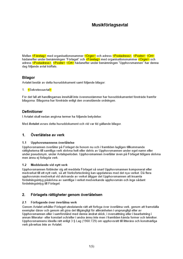 Produkter taggade med 'Musikförlagsavtal musikförlag avtal musik förlag'