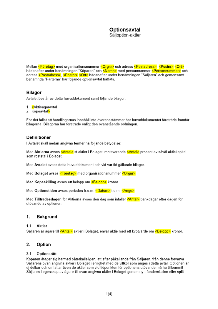 • Optionsavtal