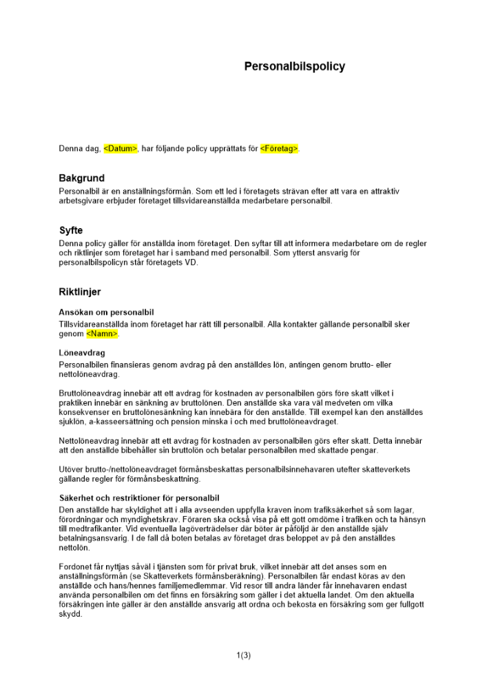 Produkter taggade med 'personalbil personal bil policy personalbilspolicy policydokument tjänstebil'
