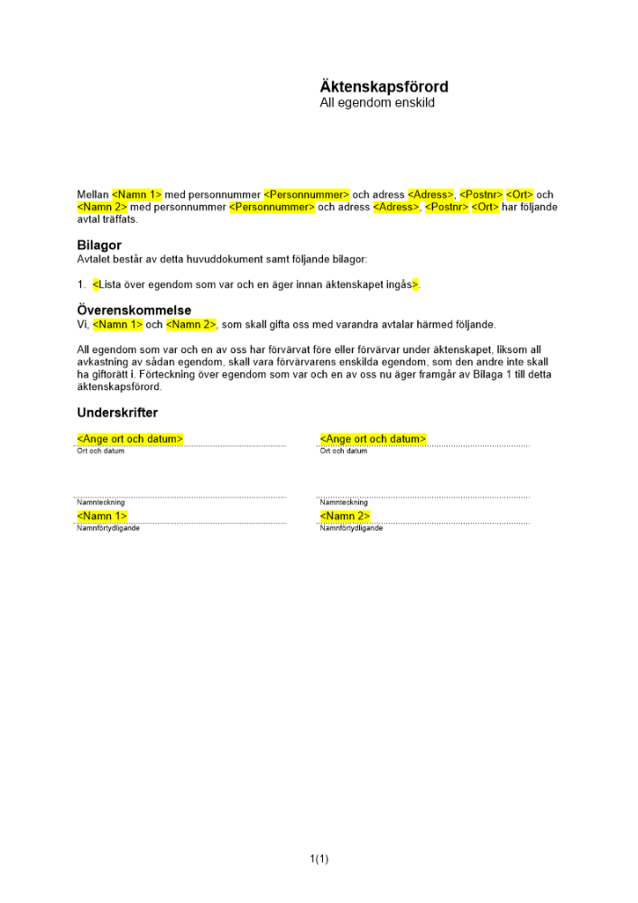 Produkter taggade med 'aktenskapsforord bröllop Äktenskapsförord före äktenskap egendom enskild tingsrätten'