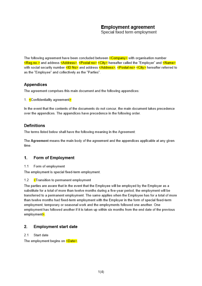 • Anställningsavtal