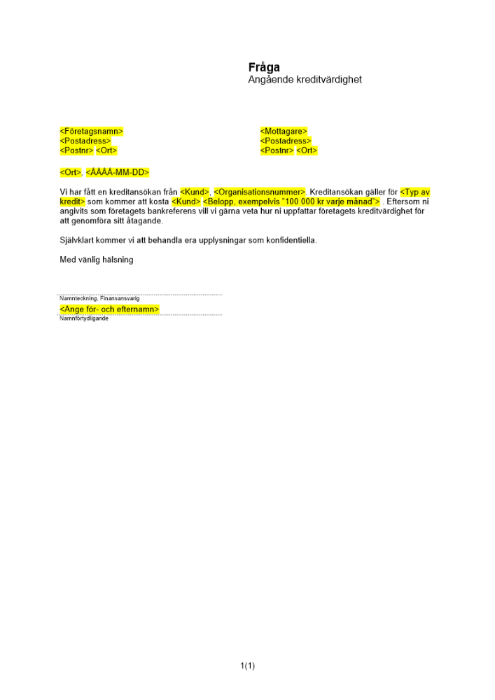 Produkter taggade med 'Förfrågan bank bankreferens kredit betalningsförmåga'