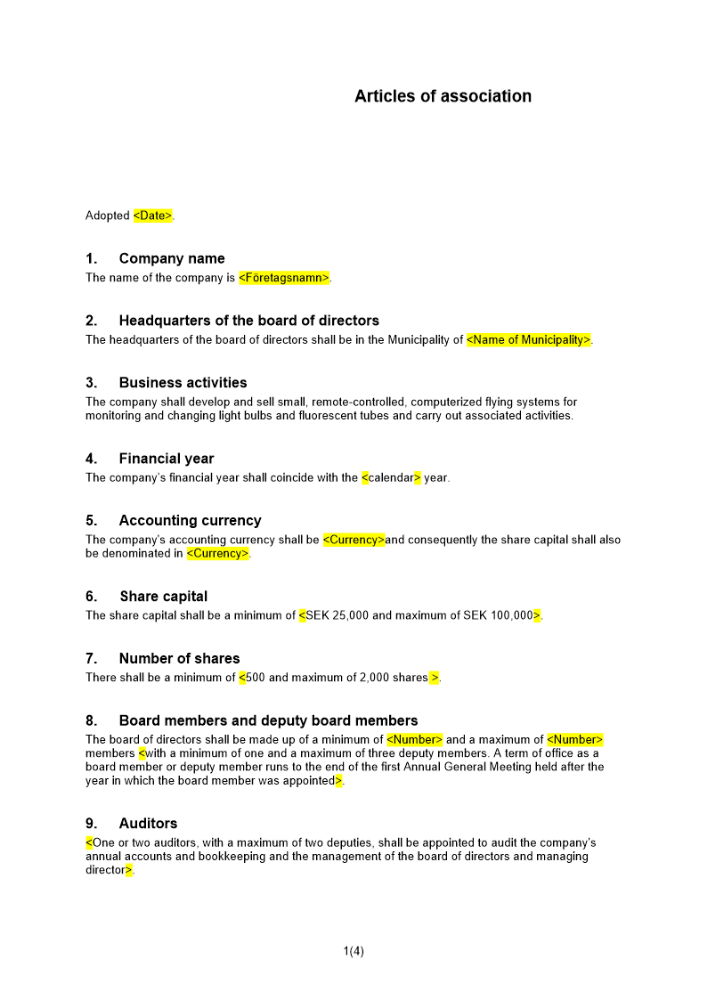 Produkter taggade med 'Bolagsordning privat engelska aktiebolag stadgar aktie bolag företag articles of association'