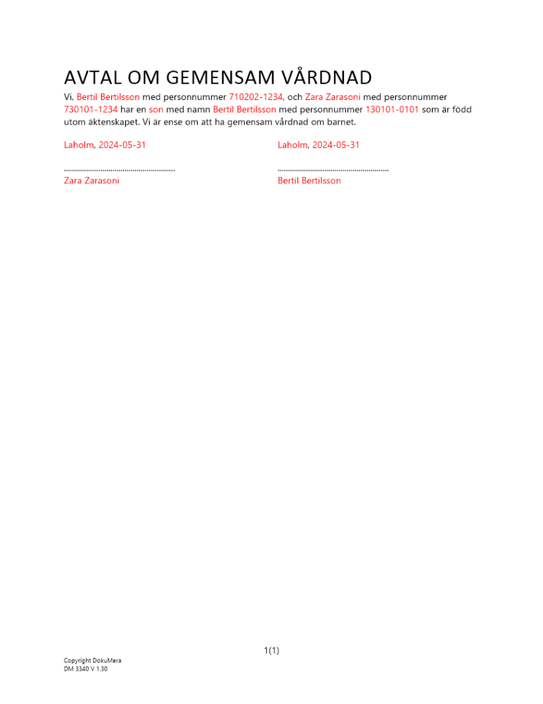 Produkter taggade med 'Avtal gemensam vårdnad vårdnad överenskommelse barn förälder sambo par ogift'