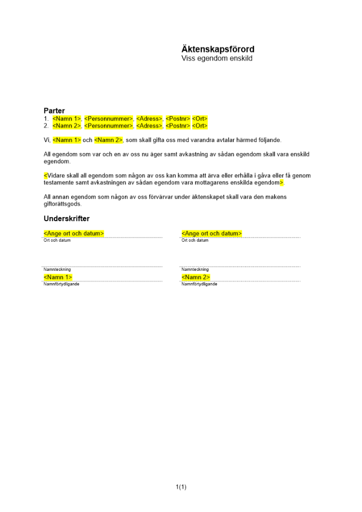 Produkter taggade med 'bröllop Äktenskapsförord före äktenskap egendom enskild Äktenskapsförordet tingsrätten separation'