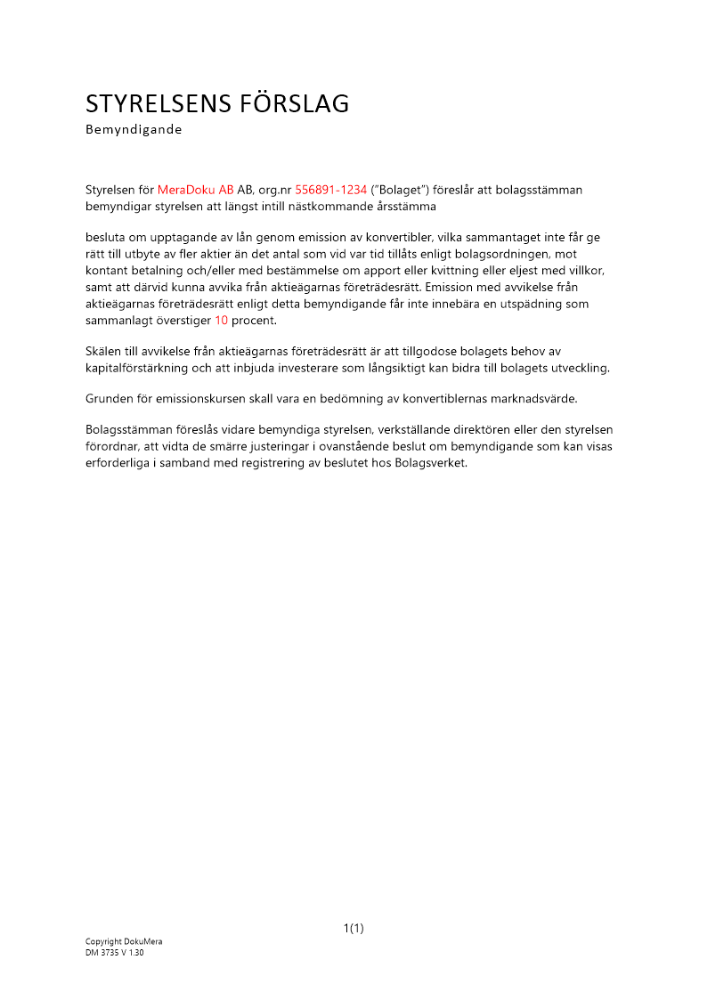 Produkter taggade med 'Bemyndigande konvertibler emission styrelse stämma förbehåll förslag bolagsstämman beslut'
