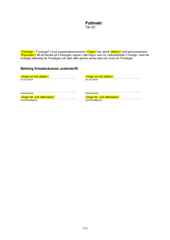 Produkter taggade med 'fullmakt vd chef manager filial företräda'