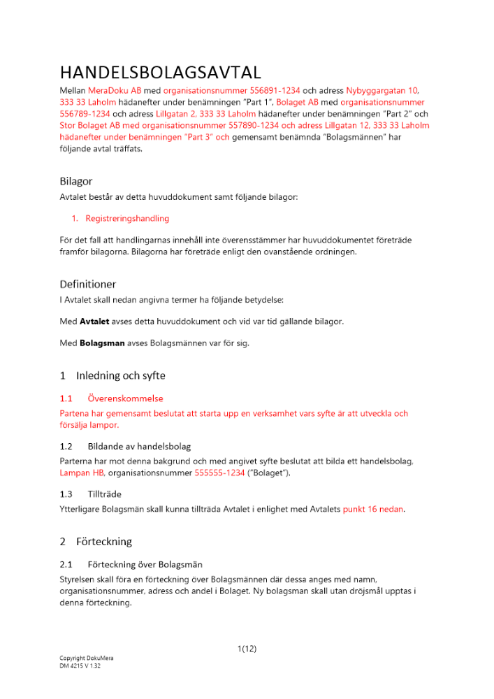 Produkter taggade med 'Handelsbolagsavtal tre ägare handelsbolag solidariskt ansvariga näringsverksamhet Bolagsverket'