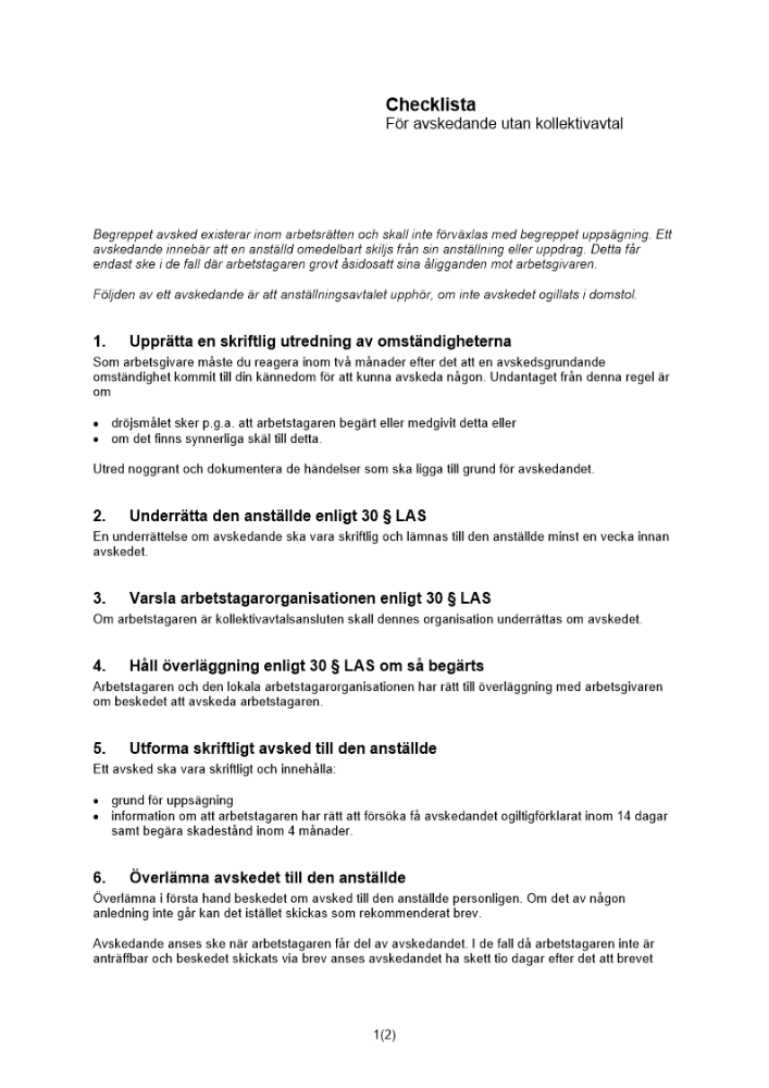 Produkter taggade med 'Checklista avskedande kollektivavtal avsked uppsägningstid uppsägningsgrund fullföljdshänvisning.LAS'