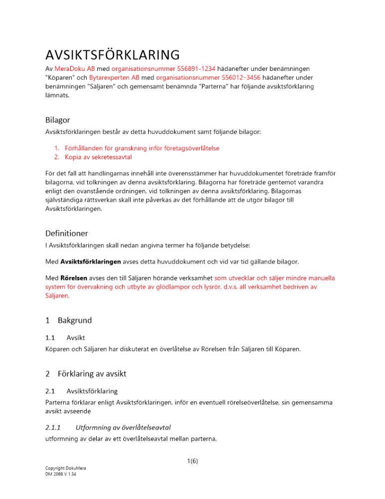Produkter taggade med 'letter of intent företagsavtal ägarbyte företags överlatelse Företagsöverlåtelseavtal rörelse Avsiktsförklaring företagsöverlåtelse rörelse letter of intent föravtal företagsförvärv inkråmsaffär'