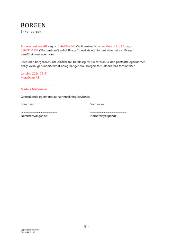 Produkter taggade med 'Fyllnadsborgen företag Enkel borgen fordran fordringen borgenären gäldenären borgensmannen primär pa'
