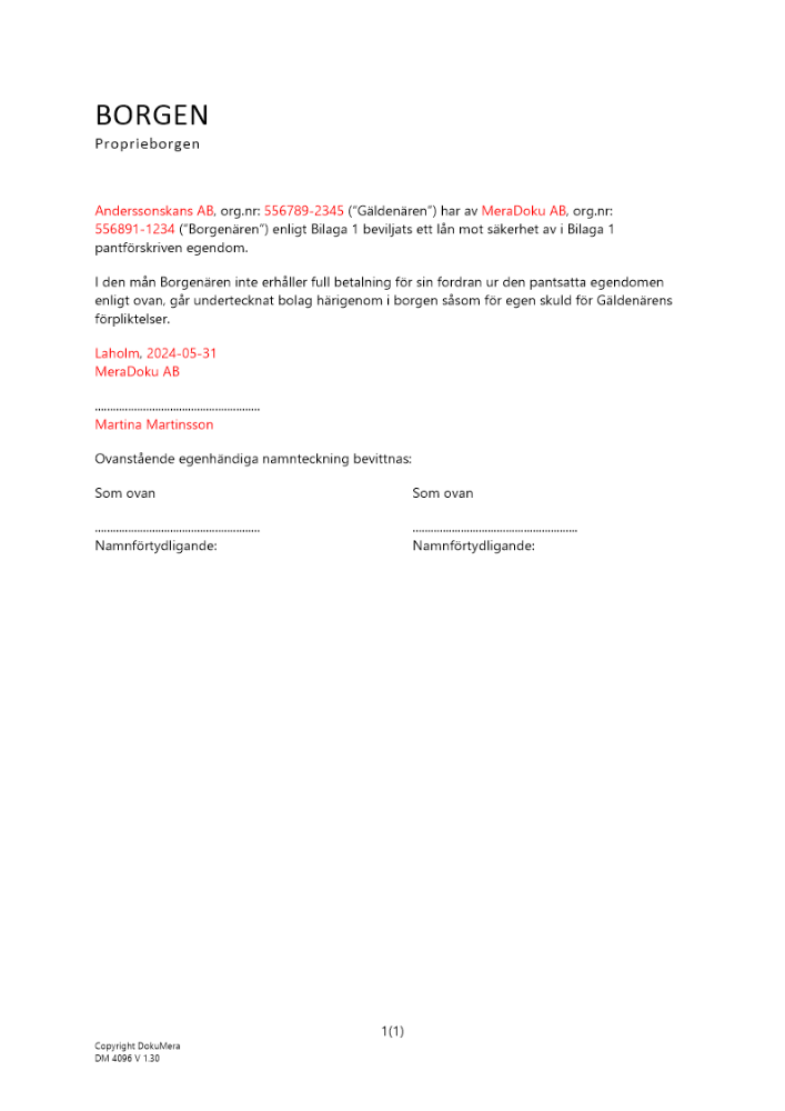 Produkter taggade med 'Fyllnadsborgen borgen proprieborgen borgensman pant gäldenär lån gäldenär'