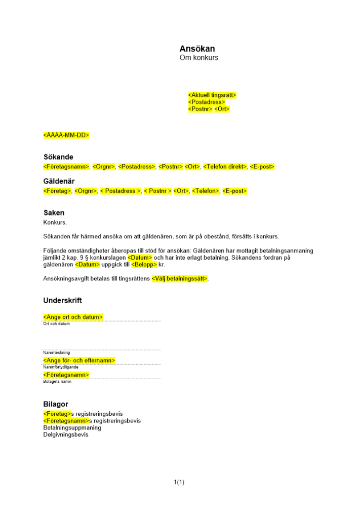 Produkter taggade med 'Konkursansökan anmaning enligt 2 kap 9 § konkurslagen fordringsägare obestånd konkurs skuld uppmaning'