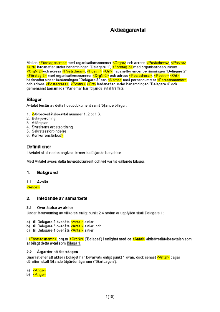 Produkter taggade med 'Aktieägaravtal majoritetsägare avtal aktier finansiering'