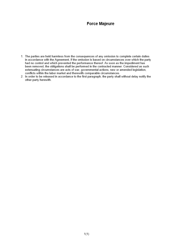 Produkter taggade med 'Force majeure force majör majur klausul avtal kort engelsk engelska english major'