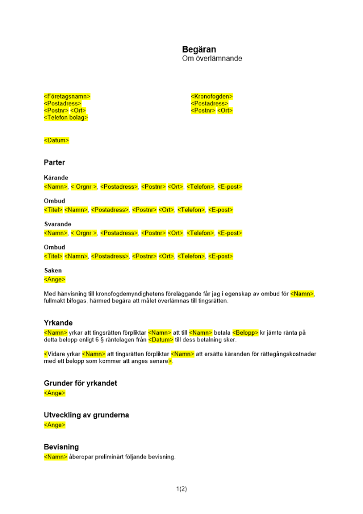 Produkter taggade med 'Begäran överlämnande tingsrätt kronofogdemyndigheten kronofogden ansökan'