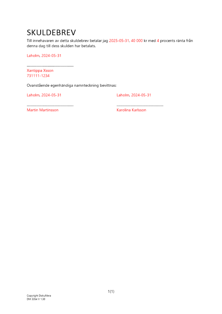 Produkter taggade med 'avbetalningsplan Löpande skuldebrev innehavare sälja privatperson'