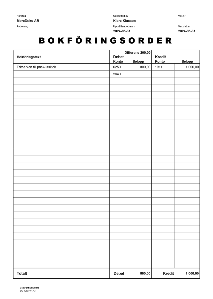 Produkter taggade med 'Bokföringsorder sida differensberäkning konteringsarbetet verifikation bokföringsunderlag omföring'