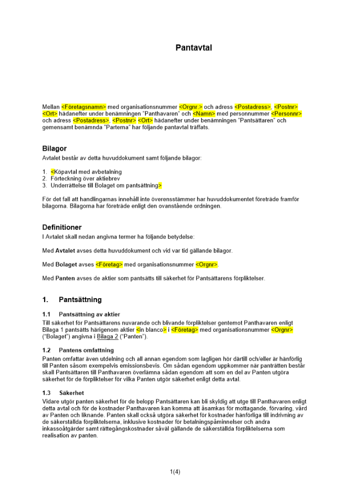 Produkter taggade med 'Pantavtal aktier detaljerat säkerhet fordran pant i aktier Pantavtal aktier detaljerat säkerhet fordran pant i aktier pant aktier fordran'