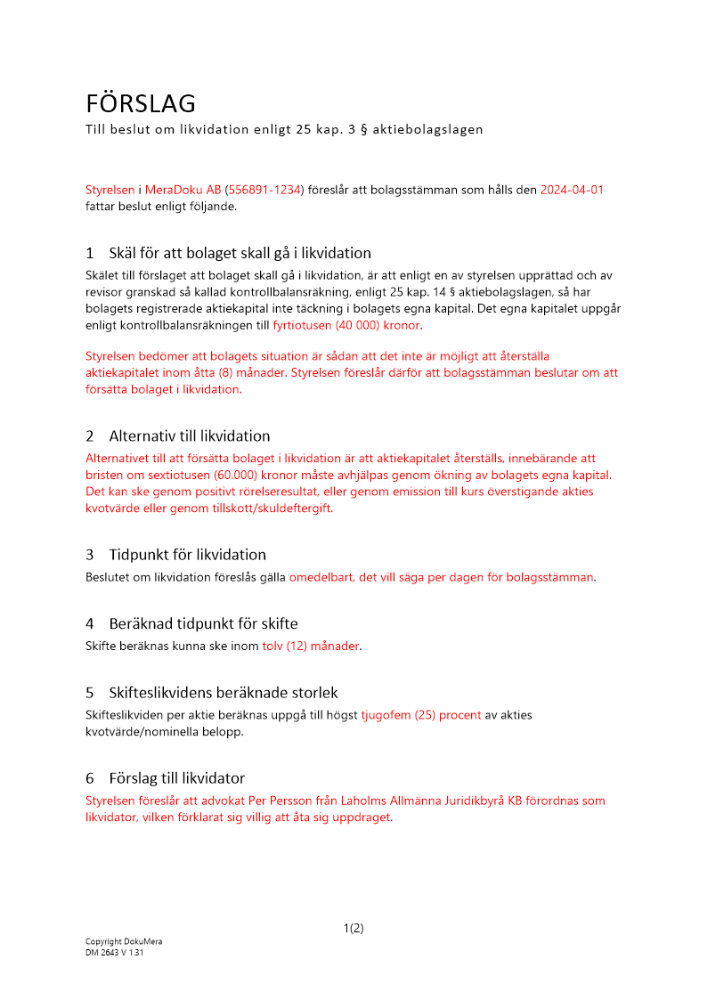 Produkter taggade med 'likvidation förbrukat aktiekapital'