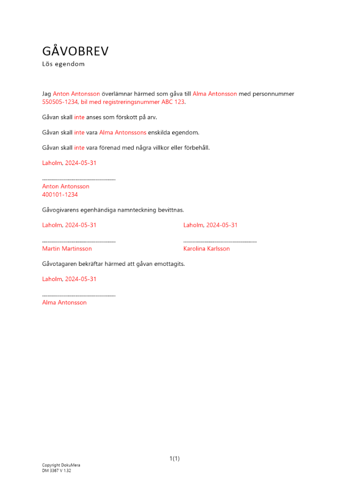 Produkter taggade med 'Gåvobrev villkor lös egendom villkor giftorättsgods '